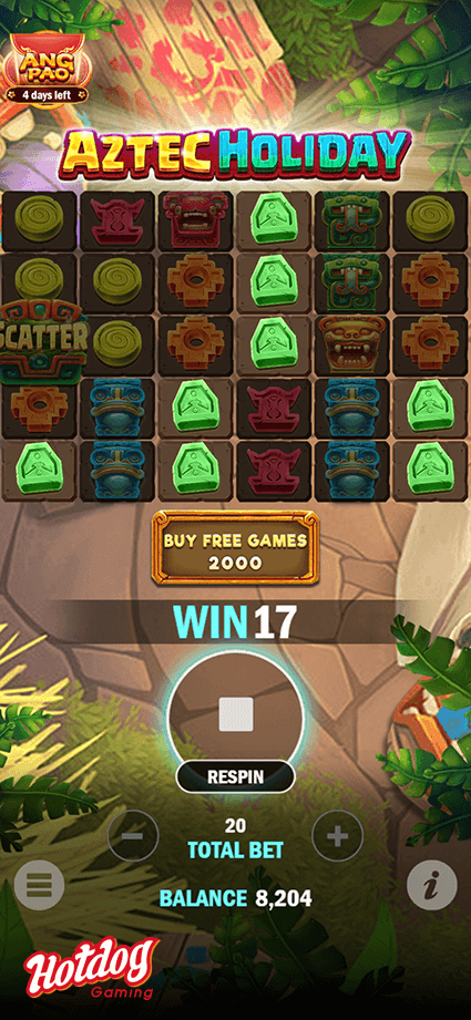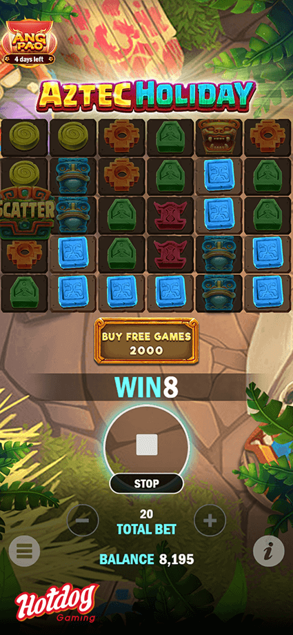 Explore the beautiful beaches in Aztec Holiday, finding the same totems in each spin will give players more chances to win more from symbol dropdown. Not only that, triggering the free game will unlock Epic Multiplier to get Big Wins!