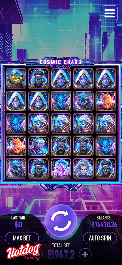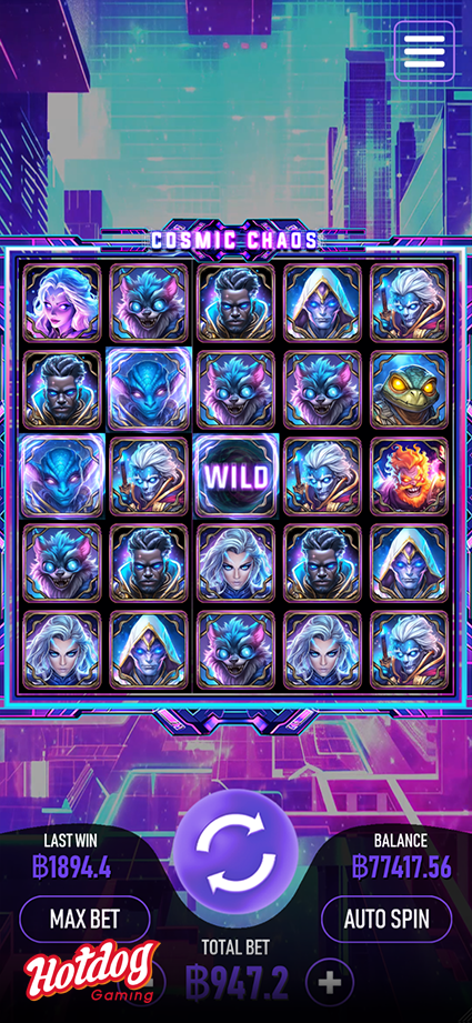 Blast off into an interstellar battle with Cosmic Chaos, a 5x5 slot game where alien champions, cosmic warriors, and mysterious energy fields collide.