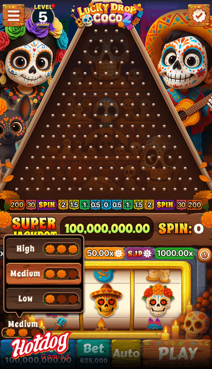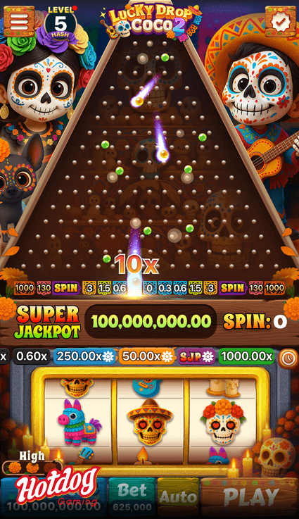 In the glow of D穩a de los Muertos, Coco is back! The all-new Lucky Drop is more than just a wheel?t? now supercharged with a mini slot reel. Feel the thrill, embrace the celebration, and let fortune fall in your favor!