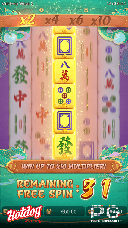 Trigger the Free Spins Feature and be rewarded with additional multiplier of up to x10! Winning golden Mahjong symbols will be converted into wild symbols as well!