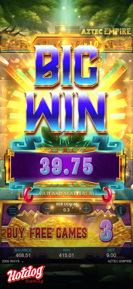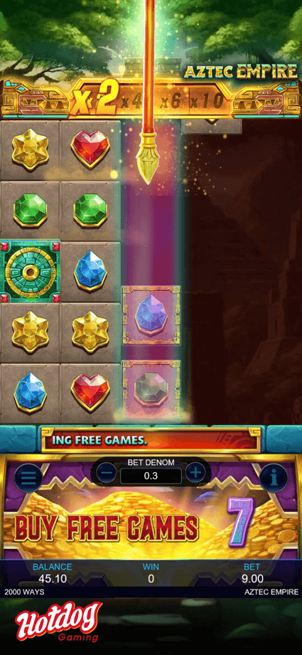 Welcome to the aztec Empire ! In the free game, the 3rd reel will be filled with Golden Symbols, and you'll have a chance to get an extra 10x multiplier here.