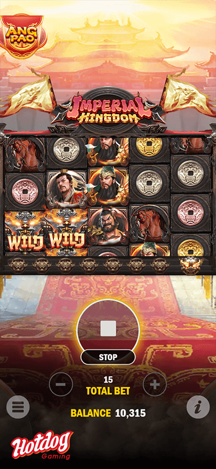 The Kingdom is in war, the victor will enjoy the spoil of war! Imperial Kingdom feature an epic Bonus Game where player siege the enemy, the 3 General also appear to help the player with random Wilds in Free Game.