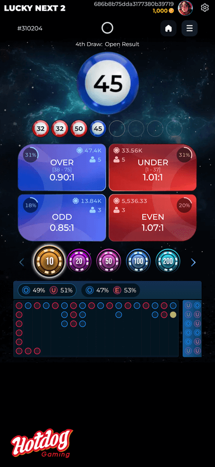 Lucky Next 2 is a strategic game featuring a set of 75 numbered balls. With eight draws in total, the chance to get big wins is higher as previously drawn balls are excluded, reshaping the betting odds at every draw. The objective is to predict the winning option and place your bets in each draw.