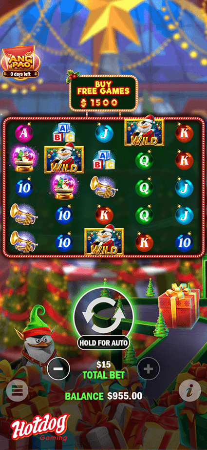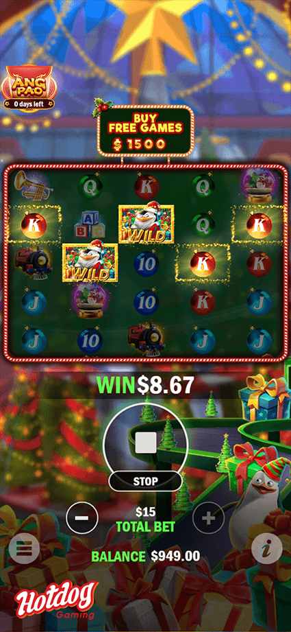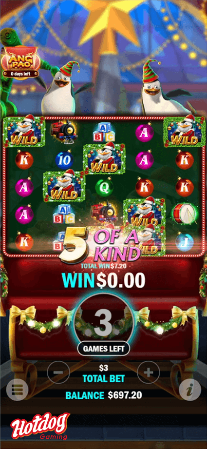 Penguins packing presents! Trigger Wilds and Respin for rewards!