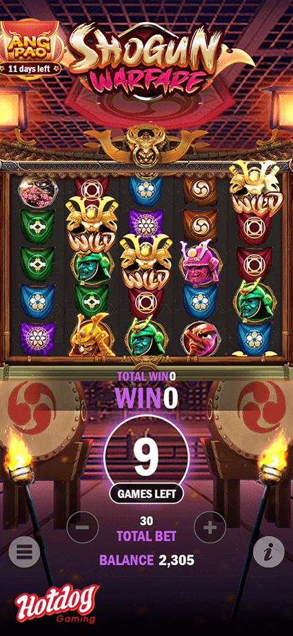 Claim your spoils of war from the Shogun Warfare, the game features amazing Sticky Wilds Free Game. Trigger the Bonus Game to collect as much Wild and multiplier to win big!