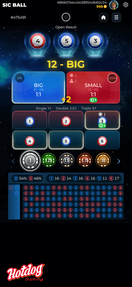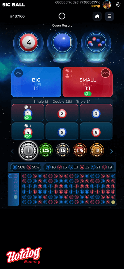 Sic Ball is an exciting game featuring three sets of balls, each set consisting of six balls numbered from 1 to 6. In each round, three balls are drawn randomly, allowing players to place bets on their preferred options before any balls are drawn.